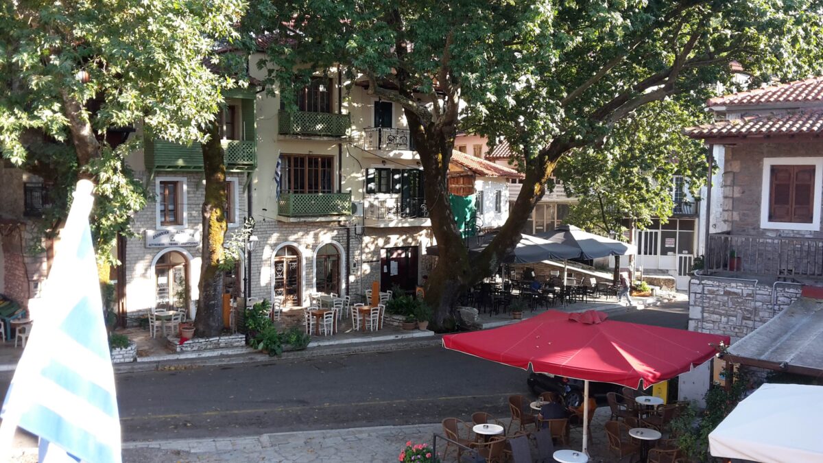 Der Dorfplatz von unserem Zimmer aus